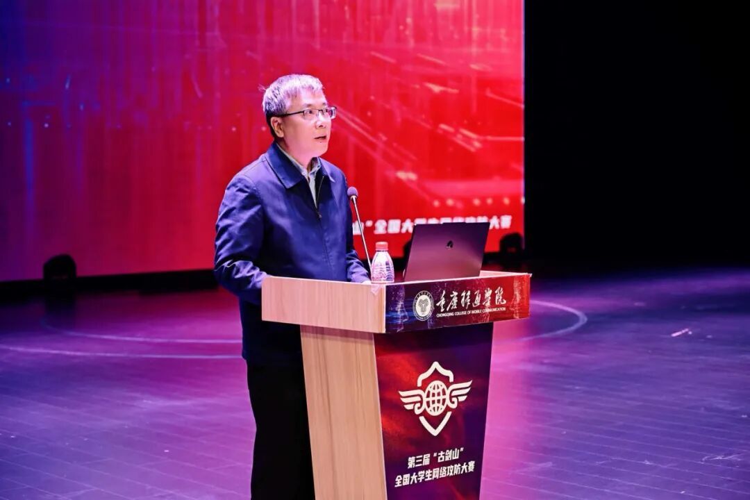 4月11日至12日,第十四届全国政协常委,民革中央常委、重庆市委会主委王新强走进重庆移通学院(綦江校区),深度参与第三届“古剑山”全国大学生网络攻防大赛颁奖典礼、主旨论坛等品牌活动,并实地调研学校书院育人、产教融合及智慧校园建设。期间,王新强多次高度评价学校育人模式与大赛成效,称赞“学生生活在这里很幸福”,并对重庆移通学院主动融入本土战略、推动网络安全产业赋能地方发展所形成的“綦江样本”表示振奋。 作为本届“古剑山”网络攻防大赛的重要环节,王新强出席主旨论坛并致辞。他指出,这场论坛不仅是学术聚会,更是政产学研深度融合的对话平台。他充分肯定学校“以赛促学、以赛促练、以赛促创,叠加‘以坛聚智’”的办赛理念,认为这为青年学子构建了从实战演练到前沿探索的全链条成长阶梯。
