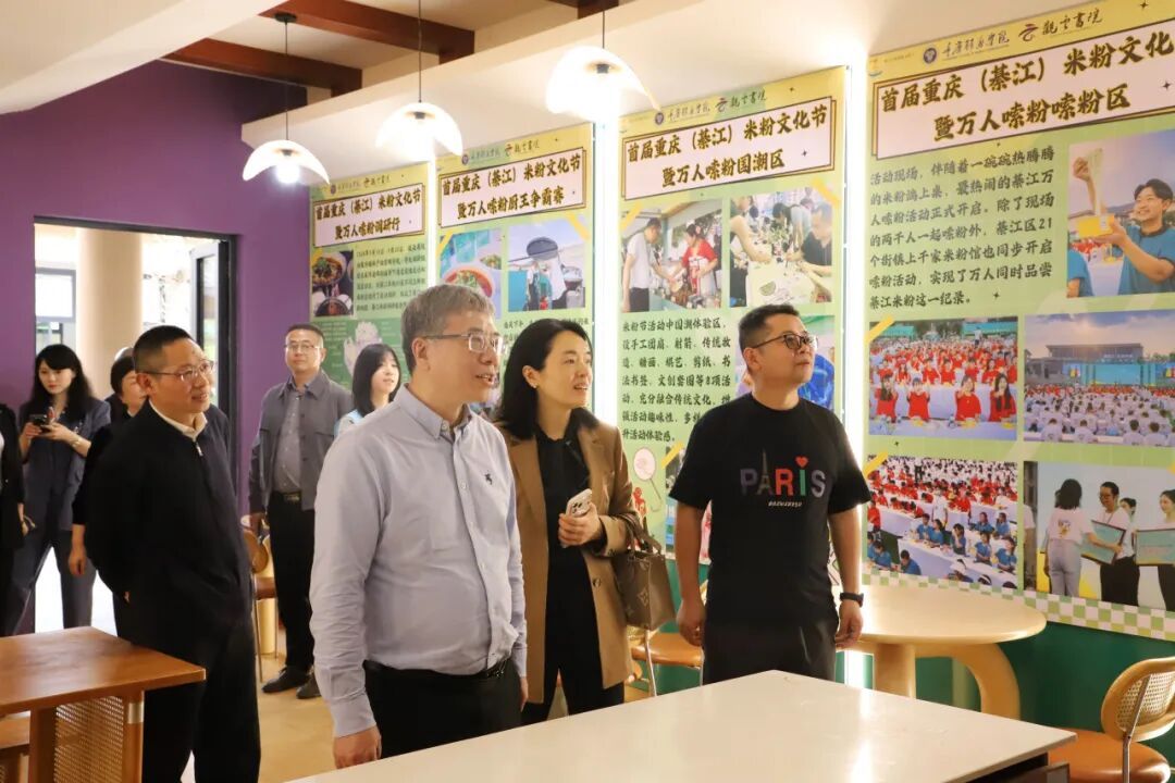 在实地感受书院多功能空间后,王新强感慨道:“重庆移通学院的学生可以享受到这么有特色的书院空间,生活在这里肯定很幸福。”在参观学校与綦江区校地共建、师生共同打造的綦江非物质文化遗产馆时,他称赞“重庆移通学院把地方的特色与学校的培养体系有机地结合了起来”,这座展馆不仅是綦江区非物质文化遗产的集中展示窗口,更是学校扎根地方办学、深化校地合作、践行实践育人理念的重要成果,移通形成了独具特色的育人路径,既服务了地方文化传承,又提升了学生的综合素养。他同时点赞学校育人环境优质,以多元实践场景助力学生全面发展,尽显全人教育特色。
